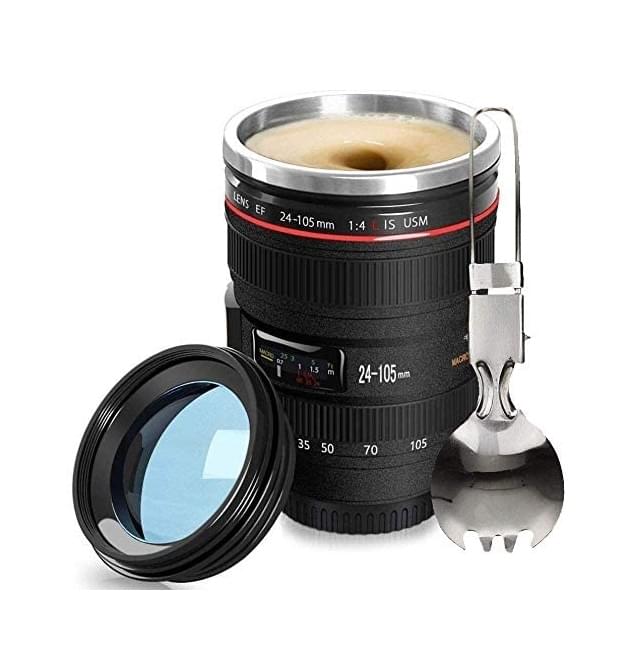 Are you looking for a gift for a photographer or gadget freak?Kick start your day with a coffee in your professional camera lens cup.They are built to look practically identical to one of the most recognizable camera lens designs, featuring all the hallmarks of a classic 24-105mm f/4 .0L IS USM lens.The details really make this product shine,1:1 size having every part of a classic camera lens replicated to an incredible standard.Fascinating details such as the image stabilization switch, auto focus switch, distance information window and technical information like aperture size could even fool a professional into believing this cup is a genuine camera lens.The focus dials are replaced with replicas made from high-grip rubber,this turns a clever decorative feature into a functional part of the cup that helps the user to keep a firm grip.Keeps Drinks Warm Longer Than