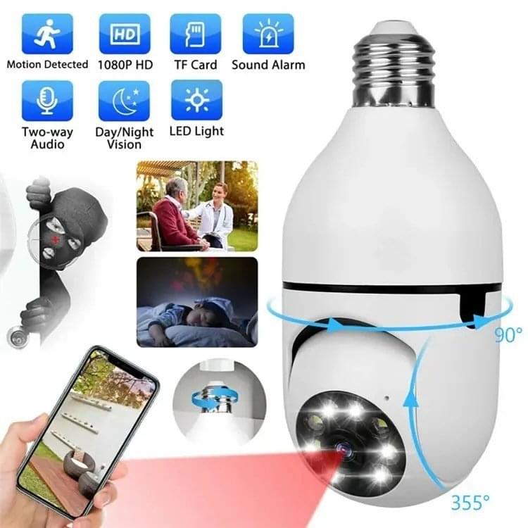 360-Degree Surveillance: The E27 Wireless Security Camera provides complete 360-degree coverage, ensuring no blind spots in your security setup. Whether indoors or outdoors, this camera can rotate to cover large areas, giving you peace of mind that everything is being monitored.